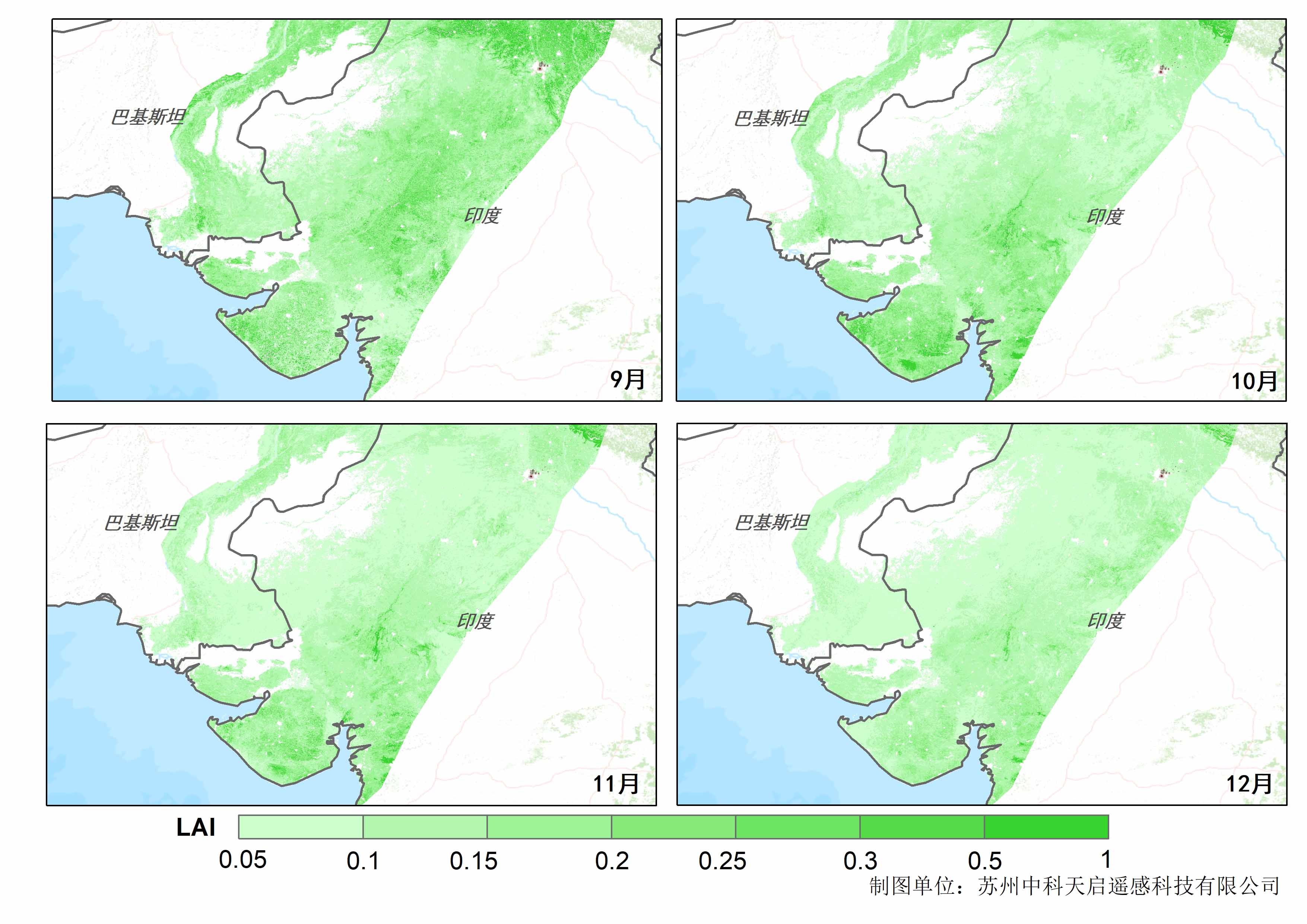 注:2019年9月到2019年12月印巴边界叶面积指数分析结果