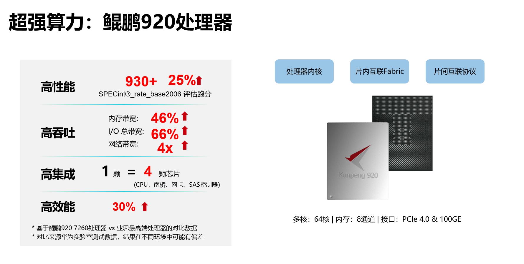 近年来,中国CPU产品技术研发已进入多技术路线同步推进的高速发展阶段。华为于2019年1月7日,发布了全新的鲲鹏920处理器,基于7nm工艺、ARM架构,最多64个核心,最高频率2.6GHz,并支持PCIe 4.0、八通道DDR4内存,性能卓越。鲲鹏认证是应用软件基于鲲鹏全栈方案完成全栈移植、调优,并实现性能提升验证要求的技术认证。获得该认证,意味着应用软件在对应场景中,对比业界主流方案有显著的性能提升。