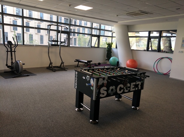 增设的健身区域缓解压力并促进员工间的互动~