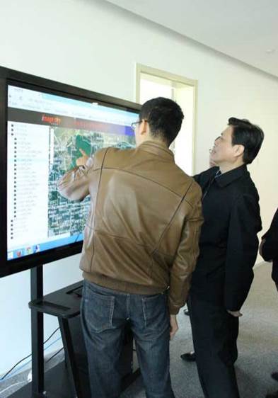 刘书记一行首先来到二楼中科天启公司,与员工亲切交流,驻足显示屏,认真观摩中科天启自主开发的遥感信息大数据处理平台的运行,仔细询问这套系统在服务地方社会经济建设中发挥的作用;在四楼中科知图展厅,刘书记观看了基于知识地图的教育大数据云计算成果宣传片,询问了中科知成自然教育和地理科普在提升全民科学素养方面的创意和特色。刘书记对各入驻公司在短短几年取得的初步成绩表示肯定。