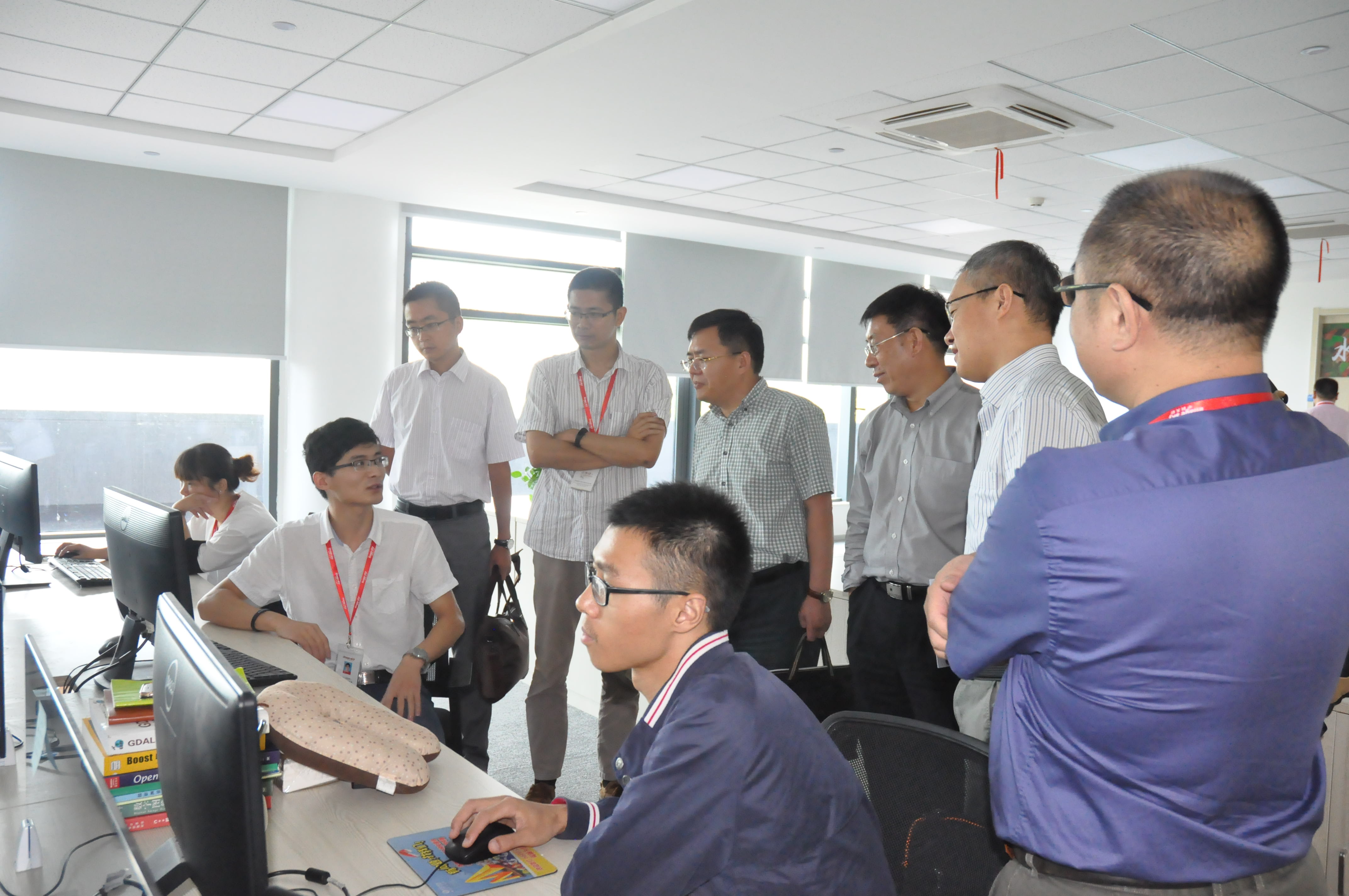 会议结束后,中科天启总经理胡晓东博士陪同朱院长一行参观了中国科学院地理信息与文化科技产业基地新大楼和中科天启的新办公环境。参观途中,朱院长一行与公司一线技术人员就相关技术进行了亲切交流。